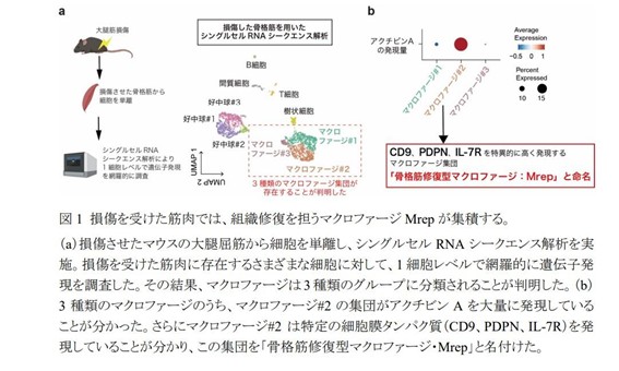 以上の研究成果により、筋肉の修復に不可欠な新しいマクロファージ集団Mrepの存在が明らかになりました。Mrepを標的とする制御法が筋肉の再生療法だけでなく、進行性骨化性線維異形成症(FOP)に対する新たな治療法の開発に活用されることが期待されます。