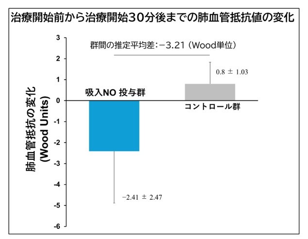 同研究は、成人肺高血圧症患者の急性重症右心不全に対する一酸化窒素治療の有効性と安全性をランダム化比較試験で確認した初めての報告となります。以上の研究成果により、既存の治療薬の効果が十分に現れるまでの橋渡しや、右心不全が急激に悪化した際の緊急治療として臨床現場で活用できることが示されました。治療初期に命を落とす重症患者さんの減少や、症状が早期に改善し退院に繋がることが期待されます。